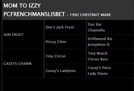 DAM OF FRENCHMANS IZZY ON OUR MARE PAGE