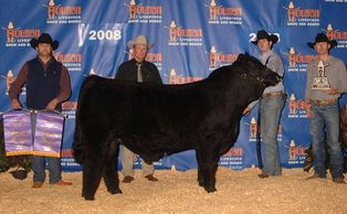 GRAND CHAMPION BULL HOUSTON LIVESTOCK SHOW AND RODEO MEMBER OF THE RES CHAMPION PERCENTAGE OF THREE